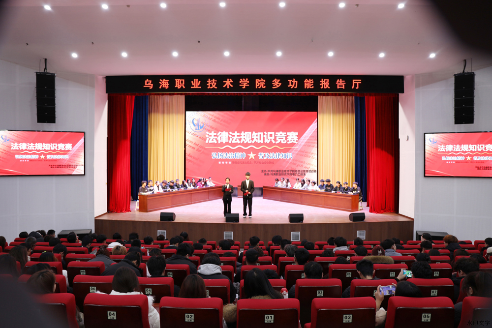 12月4日,时值国家宪法日,乌海职业技术学院报告厅内气氛热烈,由宣传统战部主办、电力工程系承办的2025年“青春无极限 法治伴成长”法律法规知识竞赛决赛在此举办,学院宣传统战部部长武俊丽、电力工程系主任周红梅出席活动并为获奖队伍颁奖。