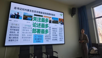 魏嘉博士首先就“习近平生态文明思想”作教学展示,讲授过程连接历史与现实、串联国内与国际、融汇理论与实践,就习近平生态文明思想历史脉络、核心内涵、推动内蒙古高质量发展做了深入浅出、系统全面、针对性强的专题辅导,老师们认真聆听,详细记录。