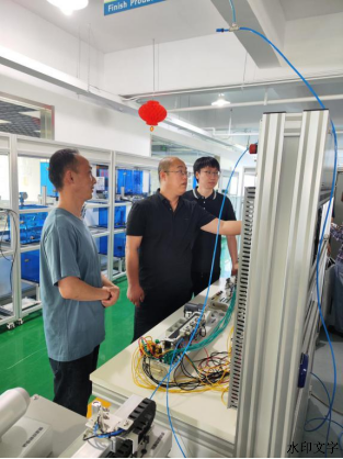 三位教师深入车间参观了智能教学设备,并与企业技术工程师进行了深入的交流和探讨。(文/图 魏国青)