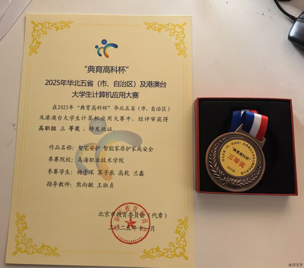 近日,2025年“典育高科杯”华北五省(市、自治区)及港澳台大学生计算机应用大赛公布赛项结果。学院选派机电工程系杨子琛、苏子辰、高乾、兰鑫四名同学组成参赛团队,在熊向敏、王淑贞两位教师的悉心指导下,凭借作品《智宅安护—智能家居护家庭安全》荣获高职组三等奖,展现了学院在数字技术人才培养方面的扎实成效。